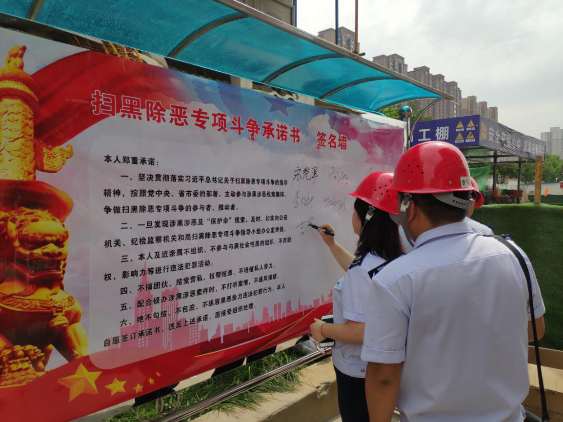 此次宣傳活動是為了進(jìn)一步落實(shí)習(xí)近平總書記關(guān)于開展掃黑除惡專項(xiàng)斗爭的重要指示精神,針對當(dāng)前建筑業(yè)掃黑除惡新動向,全面開展專項(xiàng)治理,不斷推進(jìn)“掃黑除惡”專項(xiàng)斗爭工作向縱深開展。宋曉軍副局長帶領(lǐng)稽查局工作人員對西安鵬潤悅秀城二期2.1標(biāo)段項(xiàng)目現(xiàn)場施工管理人員進(jìn)行宣講,并通過懸掛標(biāo)語條幅、發(fā)放宣傳手冊、法治宣講、承諾公示牌簽字等方式,把中央和省市關(guān)于掃黑除惡的文件精神、相關(guān)法律法規(guī)及政策帶進(jìn)施工現(xiàn)場,不斷提高現(xiàn)場施工管理人員對掃黑除惡專項(xiàng)斗爭的知曉率,積極營造全民參與掃黑除惡的濃厚氛圍。