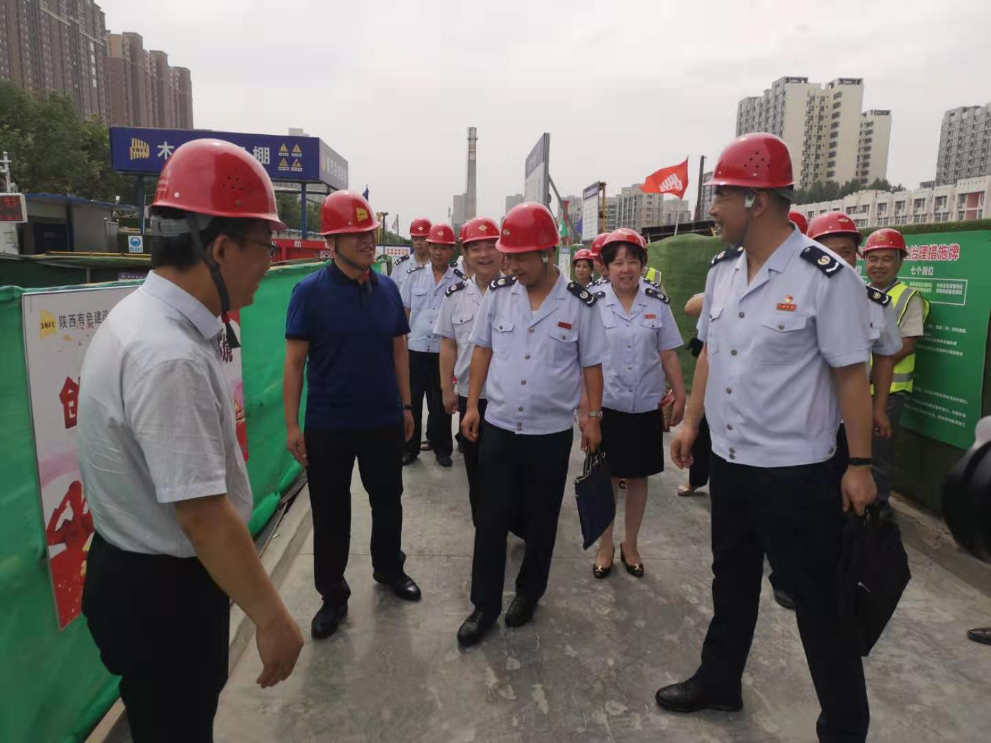 近日,西安市稅務(wù)局第二稽查局和我公司在西安鵬潤悅秀城二期2.1標(biāo)段項(xiàng)目部聯(lián)合舉行以“稅企聯(lián)動、掃黑除惡”為主題的宣傳活動,西安市稅務(wù)局第二稽查局副局長宋曉軍、公司總經(jīng)理?xiàng)蠲麾?、總會計師陳毓等兩家單位有關(guān)領(lǐng)導(dǎo)及項(xiàng)目施工管理人員參加了本次活動。